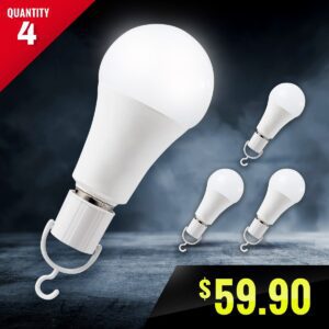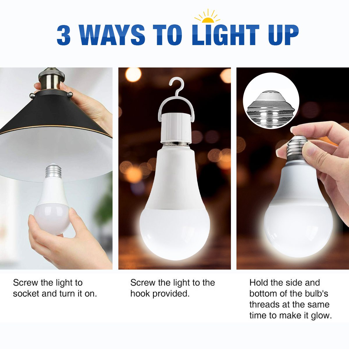 - Comes 30% charged, install to fully charge, continue to use as a regular light bulb to maintain charge so it’s ready for any power outage